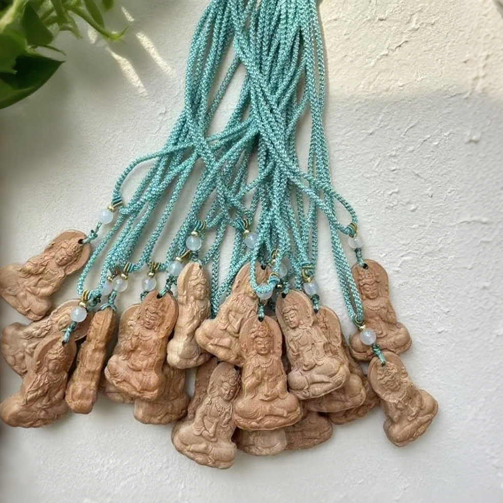 This pendant is crafted from selected wood and delicately carved with a Buddha-inspired motif. It is designed as a cultural and artistic accessory, representing craftsmanship and symbolic aesthetics. Lightweight and wearable, it can be used as a personal accessory, keepsake, or gift.
